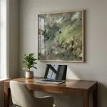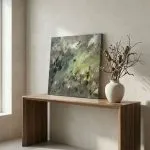 Atmosphérique et insaisissable, cette œuvre capture la beauté brute et sauvage des changements de saison. D’élégantes diagonales créent une sensation de profonde turbulence, illustrant la lumière qui traverse une tempête.