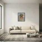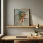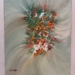 Une fascinante tempête de douces textures équilibrant le calme absolu et l’énergie passionnée. Le regard est naturellement attiré vers son cœur incandescent aux teintes automnales, solidement ancré dans un mouvement éthéré.